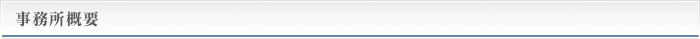 | 取扱業務 | ■法人向け 企業法務 / 知的財産権・インターネット法 / 企業再生 / 企業間訴訟 / 債権回収 / 労使交渉 / 労働審判 ■個人向け 離婚 / 相続 / 交通事故 / 不動産・成年後見・事業承継 / 各種損害賠償 / 消費者問題 / 労働問題 / 刑事事件 |